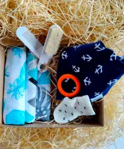 Powitaj na świecie małego człowieka prezentem, który zawiera niezbędne w pierwszych miesiącach życia akcesoria. Elegancko zapakowany w pudełko z okienkiem box z pewnością zachwyci świeżo upieczonych rodziców, a co ważniejsze zawartość pudełka przyda się w opiece i pielęgnacji maluszka.
