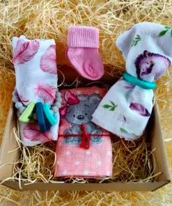 Powitaj na świecie małego człowieka prezentem, który zawiera niezbędne w pierwszych miesiącach życia akcesoria. Elegancko zapakowany w pudełko z okienkiem box z pewnością zachwyci świeżo upieczonych rodziców, a co ważniejsze zawartość pudełka przyda się w opiece i pielęgnacji maluszka.