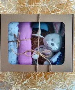 Powitaj na świecie małego człowieka prezentem, który zawiera niezbędne w pierwszych miesiącach życia akcesoria. Elegancko zapakowany w pudełko z okienkiem box z pewnością zachwyci świeżo upieczonych rodziców, a co ważniejsze zawartość pudełka przyda się w opiece i pielęgnacji maluszka.